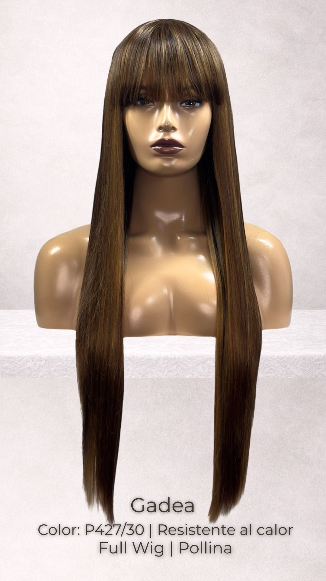 Los estilos de la colección de pelucas completas o con pollina “flequillo”, son la favorita de muchas. Su famosa fibra Future "Realista" es resistente al calor y tiene la capacidad única de durar más que otras fibras.