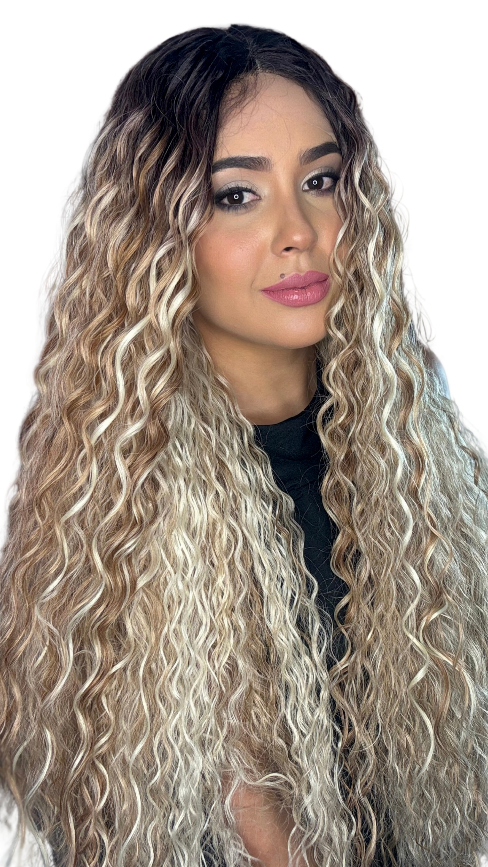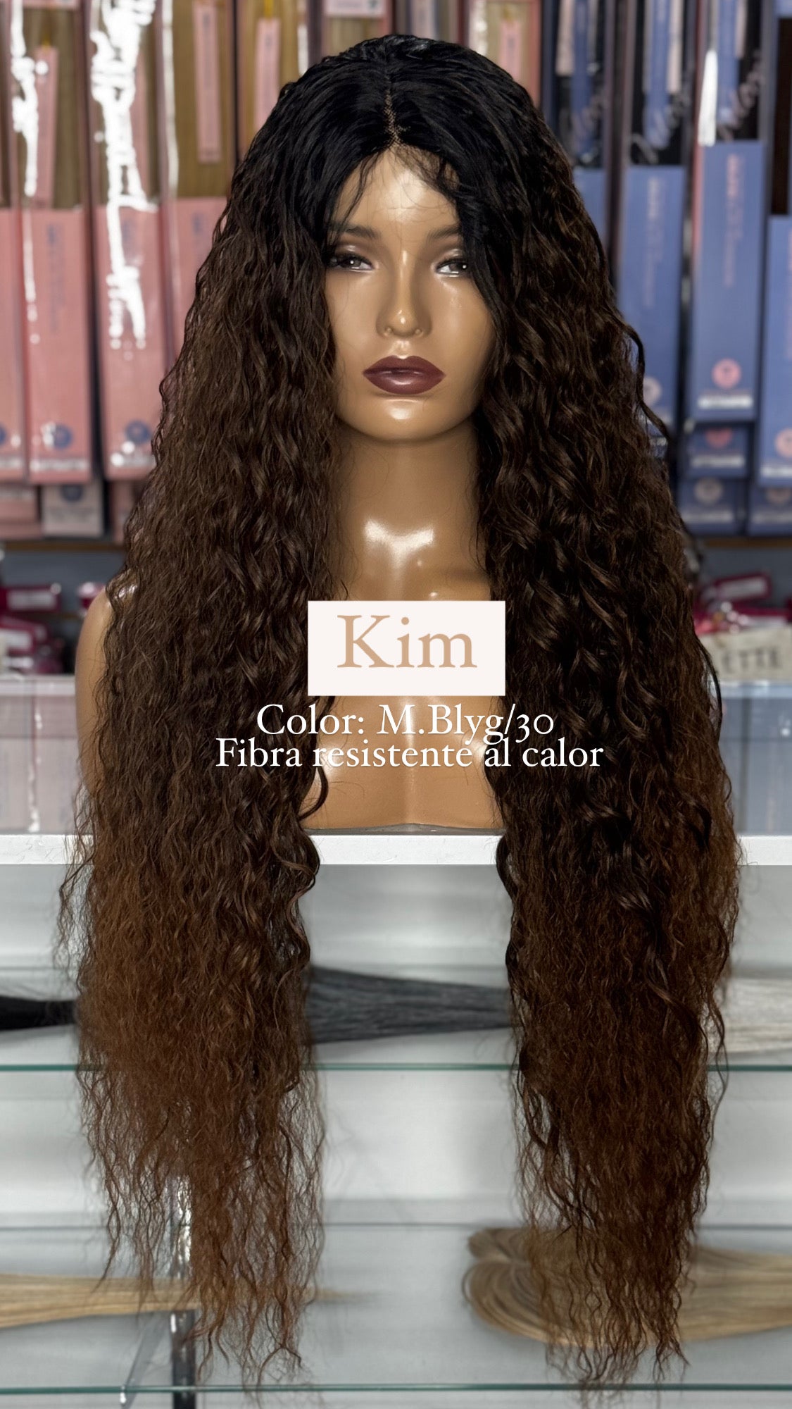 This style of summery curls is going to seduce you! Our style Kim has been worked with a Swiss lace from ear to ear that makes this piece one of very fine appearance and worthy of admiration. Certain additional attributes such as its fine line of baby hair (Pre-plucked) and its fine heat resistant fiber (100% Heat Retardant Fiber) make this piece look sensational! You can find it in basic colors and fantasy colors.