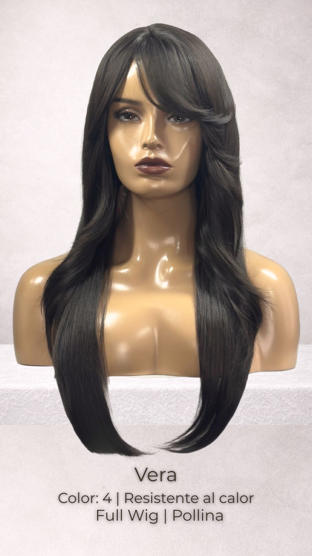 Los estilos de la colección de pelucas completas o con pollina “flequillo”, son la favorita de muchas. Su famosa fibra Future "Realista" es resistente al calor y tiene la capacidad única de durar más que otras fibras.